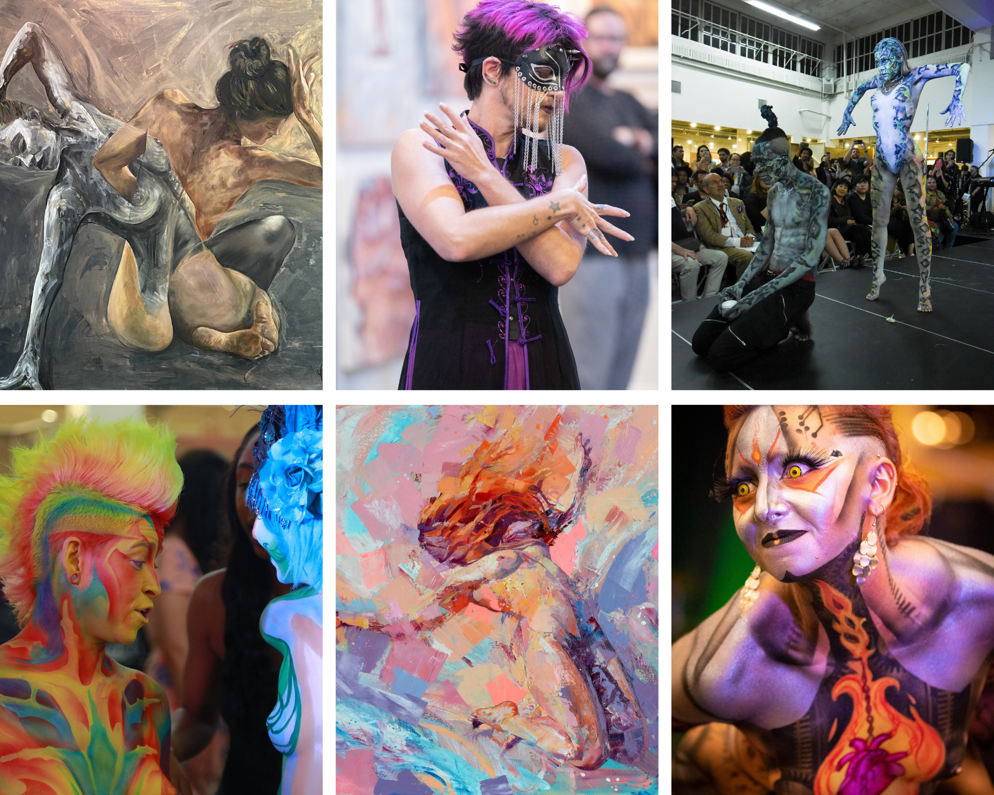 A pop-up art and performance event celebrating the tasteful, artistic depiction of the nude human form through fine art, live performances, and interactive exhibits.